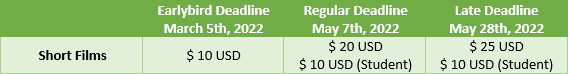 – Only short films narratives of all genres will be considered.