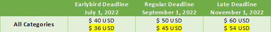 – Submission Fees & Deadlines: