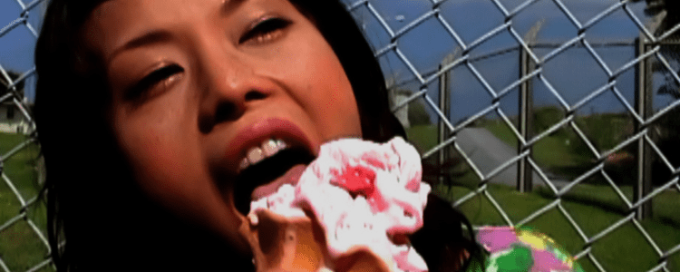 Leaning over a fence surrounding a U.S. military base, a woman is happily eating ice cream someone gave her. Those who know the status quo of Okinawa will realise that the ice cream symbolises both a promotion policy in compensation for the accepted bases and an image of tourism unilaterally imposed. The filmmaker herself plays the role of the woman who plays the role of (the people in) Okinawa itself (themselves) relying on such realities. Through simulationism, the film embodies the present tense of the local culture’s disappearance, transformation into tourist attractions and rapid homogenisation. (Oberhausen 2023)