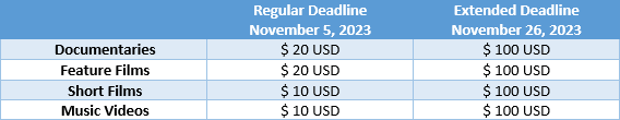 – Films previously submitted will not be accepted.