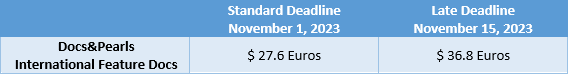 – International Documentary (non-spanish) can only apply to the Docs&Pearls Official Section.