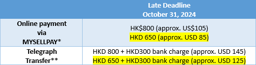 ** Once the transfer is completed, please notify us by sending an e-mail with the bank advice to hkiffindustry@hkiff.org.hk. Please include