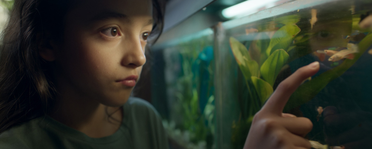 Belly sinks further and further down into the depths of a mysterious underwater garden. Above water, she is bullied at school for not speaking the language and already having her period. At home, her mother gives her nothing but tough love. Down below is the only place she feels free. But before she can truly live and breathe in this dark fairy tale realm, she must grow the fins of a mermaid, which requires a very painful sacrifice.