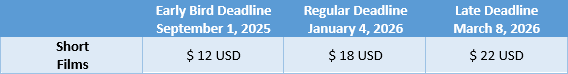 *Fees are from FilmFreeway