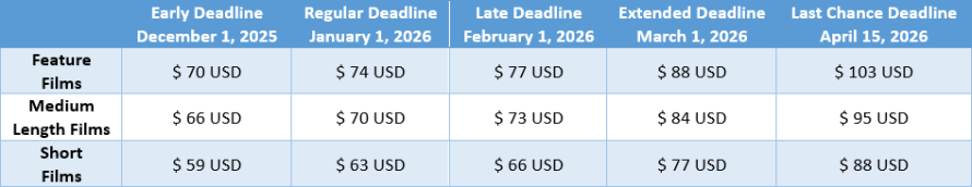 Note: This article will display information and fees for international films for information about local films (Canadians) please visit the official website of the festival.