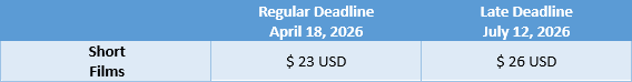 – Submissions can be done via FilmFreeway or ShortFilmDepot.