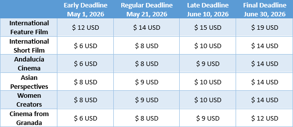 * Fees and dates displayed are from FilmFreeway.